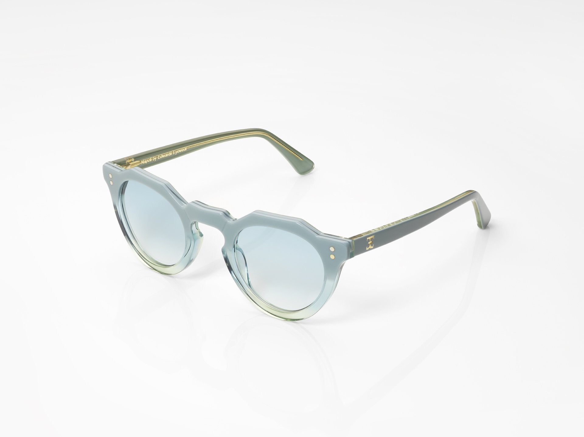 The Edwards Eyewear statement piece, the Napoli. With a more architectural composition, we have blended a traditional round-eye shape with an upswept angular top rim for an edgy take on a classic look.